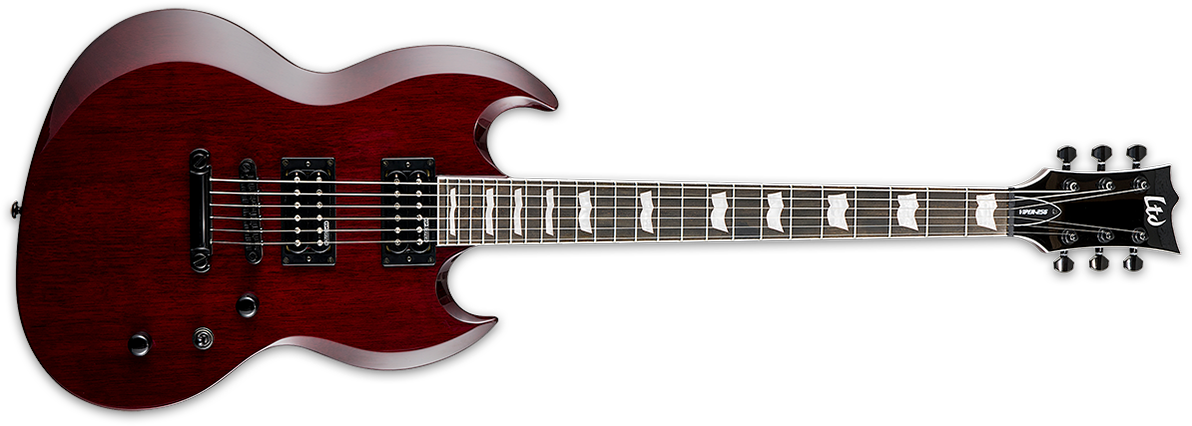 A série Viper da LTD oferece o visual de uma guitarra double cutway, que é perfeita para metal, hard rock, blues e muito mais. Com a Viper-256, você tem a pegada clássica de uma verdadeira "máquina" de rock and roll com escala de 24,75" e corpo em mogno. Mesmo com seu custo surpreendentemente baixo, a Viper-256 ainda oferece características premium, como a construção set-neck com um braço em mogno, escala em roasted jatobá com 24 trastes extra-jumbo, um par de captadores Humbuckers LH-150 projetados pela ESP, que ainda conta com a função de defasar as bobinas (push-pull), além das tarrxas e ponte LTD.