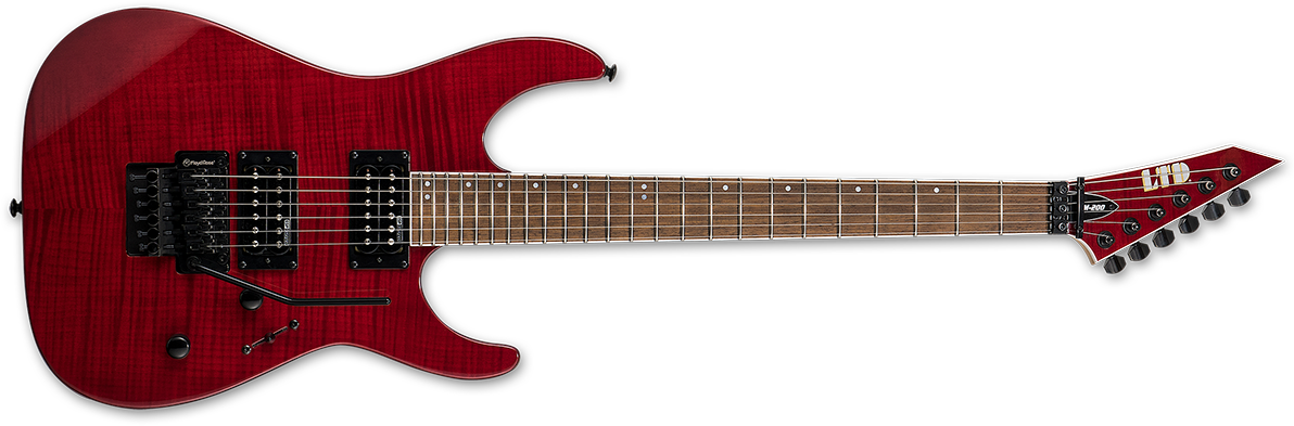 A guitarra ESP LTD M-200, é um instrumento realmente acessível e de alta qualidade. O clássico corpo flat "slab" da Série M é oferecido aqui em mogno com tampo em flame maple, com braço em maple e escala em roasted jatobá, com 24 trastes extra-jumbo. Este modelo tem o braço em parafusado nos acabamentos See Thru Red e See Thru black. Todos eles apresentam um tremolo LTD by Floyd Rose e captadores de alto desempenho, projetados pela ESP.