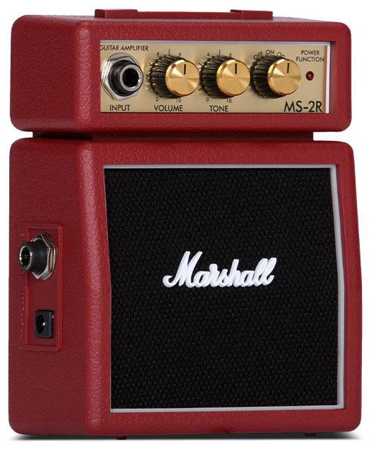Mini Half-Stack Vermelho; 1 watt; 2 canais (clean / overdrive); controle de volume, gain e tone; saida para fone de ouvido; funciona tanto com bateria 9V, quanto com fonte 9V (nãofornecidos).